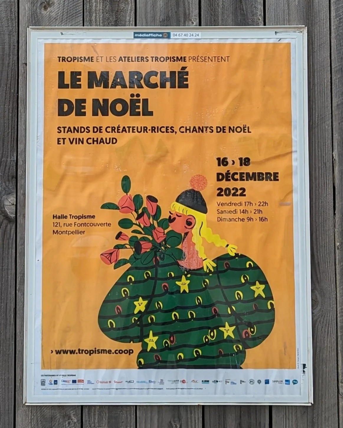 Affiche du marché de Noël à la Halle Tropisme à Montpellier